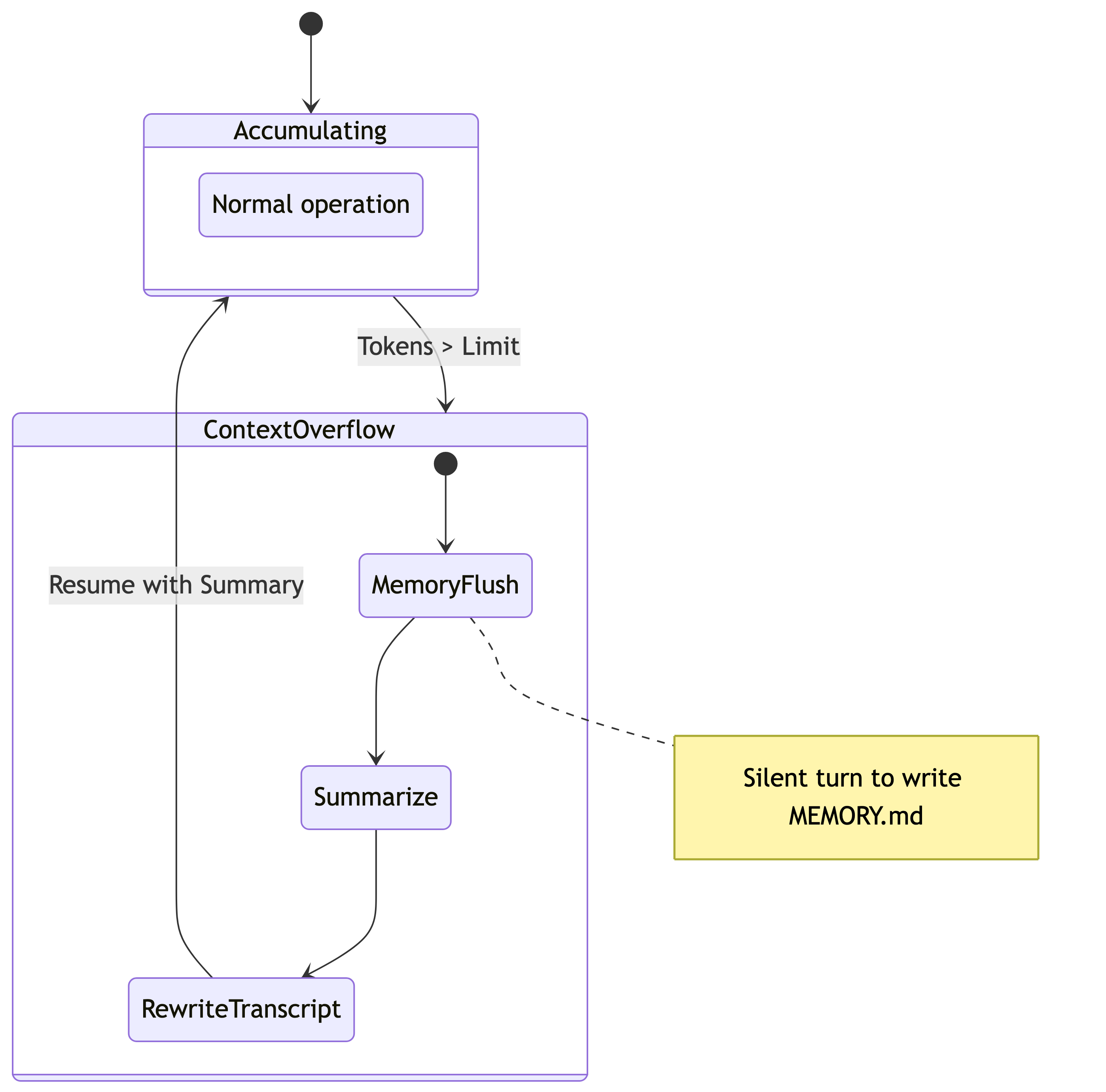 MEMORY.mdnow.” This is the last chance to save specific details (like a phone number or a code snippet) to durable storage before they are compressed into a vague summary.